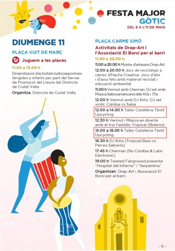 En este taller, transformaremos cada trozo de tela en pulseras, collares, pendientes o lo que la imaginación permita.